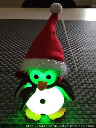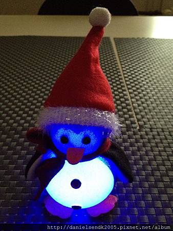 前幾天Danielson 在超市看到了這很可愛的聖誕企鵝真的是心養手養無法空手離開所以就將它帶回家了它可是會不斷地變顏色哦真的太符合聖誕節的fu 了