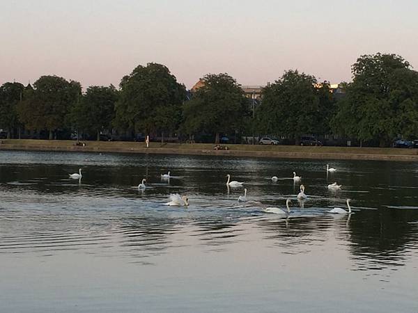 Danielson 覺得丹麥的夏天是全世界最棒的夏天 在天還明亮的哥本哈根夏夜裡 散步在市區的 4 個人工湖岸邊 真的很舒服 而且沿途的景色和倒影形成了一副天然的美麗畫作 哥本哈根的夏夜真的是很有吸引力的