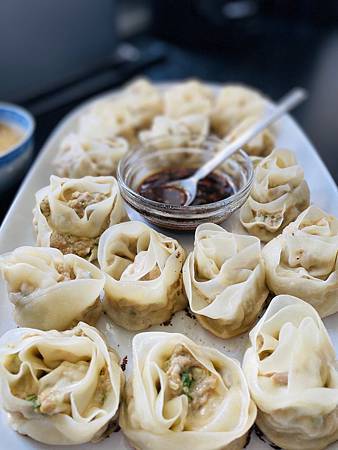後來就想說光煎餃底部沾醬就好