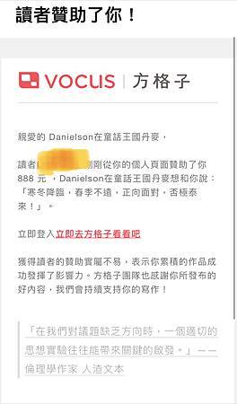 特別感謝有位讀者今天也在贊助了Danielson在方格子的寫作