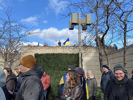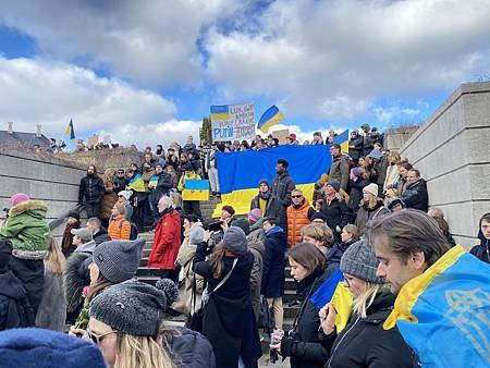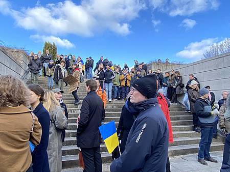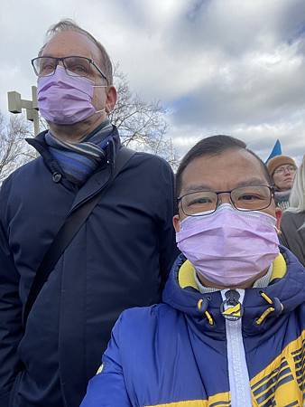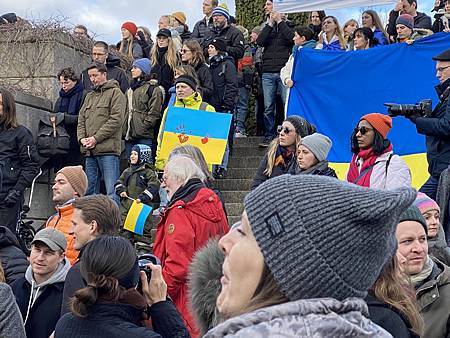 我們和麥先生最好的朋友約好碰面,一起參與這個很有意義的抗議遊行活動,雖然我們不是烏克蘭人,但想到台灣的處境,深深可以體會烏克蘭人現在憂慮的心,沒想到台灣還沒發生戰爭,我就在歐洲看到烏克蘭先被同樣是惡霸鄰居的俄羅斯所侵略,如果世界各國不有所行動,給予俄羅斯制裁,那麼中國恐怕會依樣畫葫蘆,很快也發起對台灣的侵略戰爭行動,想到這裡,Danielson 更不能不去支持啊!