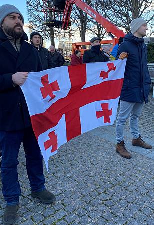 當然來的大部份都是哥本哈根當地的烏克蘭居民,但除了 Danielson 外,也是有不少外國人來參與支持。喬治亞共和國曾經也被俄羅斯這個惡霸阻擾加入NATO (北約) 成員,但喬治亞一直不斷為了他們本國的和平保障爭取,最後終於正式成為 NATO 的一員。而今烏克蘭面臨他們曾經走過的路,所以參與民眾當中就有喬治亞共和國人也來現場支持 (只可惜,這個國家很親中,為了遵守所謂的一中原則而不接受持有台灣護照的人民到他們國家觀光,大扣分)。