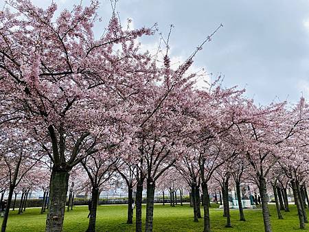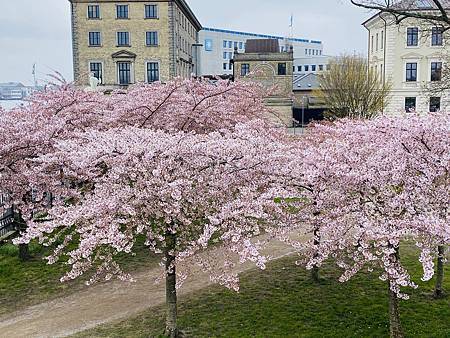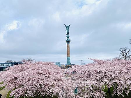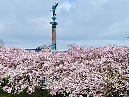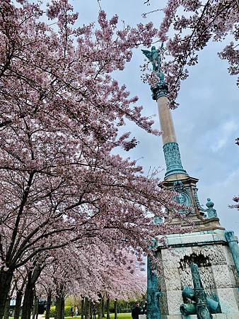 Danielson 就跟死黨一起到哥本哈根著名觀光景點-基菲昂女神噴泉旁的櫻花林賞櫻