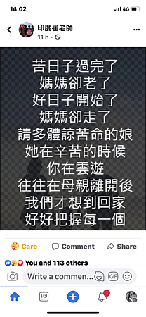 前兩天晚上再次看到外甥女對媽媽的思念文字