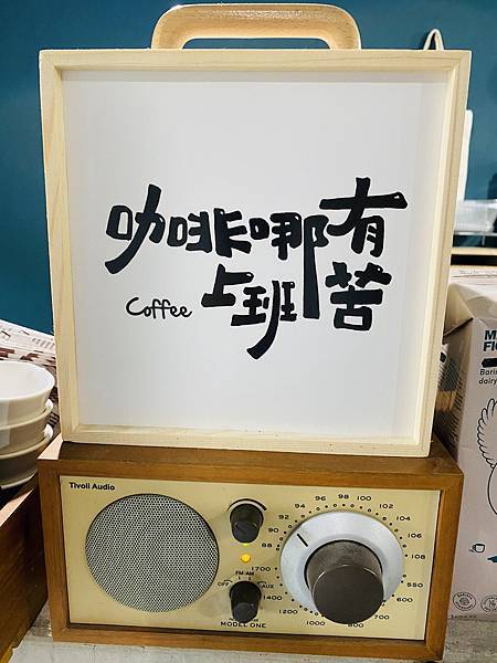 櫃檯邊有個小盒子上寫著 "咖啡哪有上班苦",這句話對很多人來說應該還滿貼切的,而且也挺有趣的。