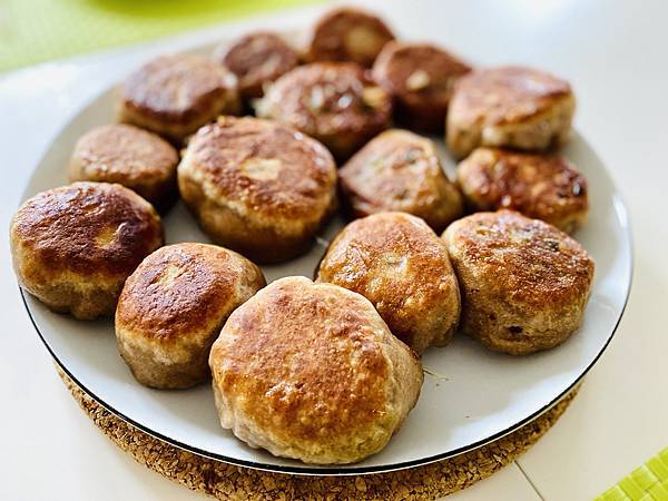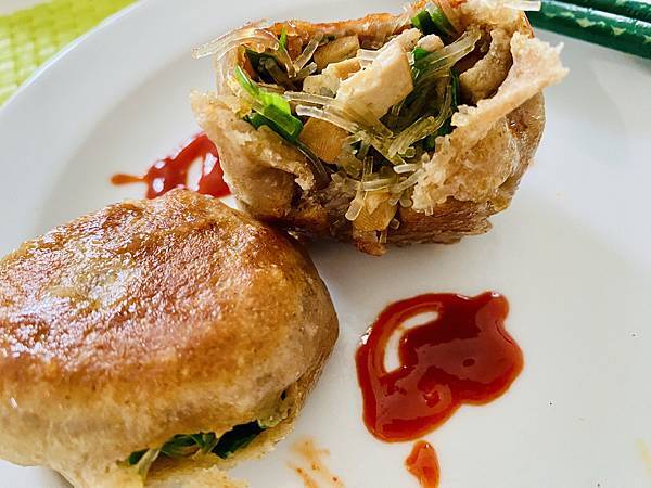 這次的內餡料除了有主角韭菜以外,還有冬粉,豆乾,蝦米和絞肉,調味料 Danielson 用了少許鹽,金蘭醬油膏,香油還有白胡椒粉,加了白胡椒粉的味道就是讚,雖不美觀,但還挺好吃的唷,所以真的不能以貌取包,想吃的韭菜盒子變成了韭菜煎包,但管它的,反正都是韭菜包,而且吃進去消化後出來都一樣啦!