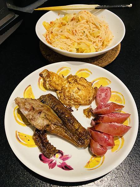 在麥先生出發到麥妹家之前,我先請麥先生留下一支烤鴨翅給我當晚餐,煎了個蛋和一條台灣香腸,煮了個高麗菜麵線,麵線用辣醬拌了一下,這就是我今年一個人的聖誕晚餐。