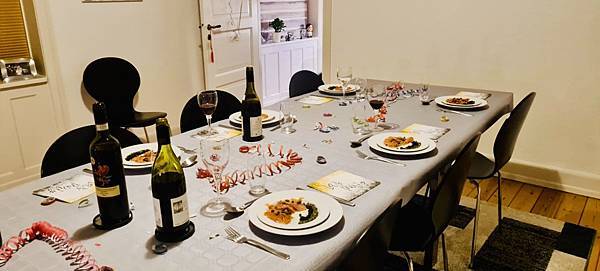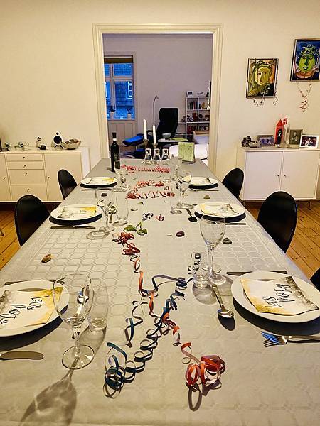 在丹麥我們年年一樣的跨年,一樣的行程新年夜,麥先生 10 幾歲的朋友 "皮爾先生" 依然在下午三點半左右到家裡幫忙一起準備新年晚餐,Danielson 就一樣把新年夜餐桌擺設好。